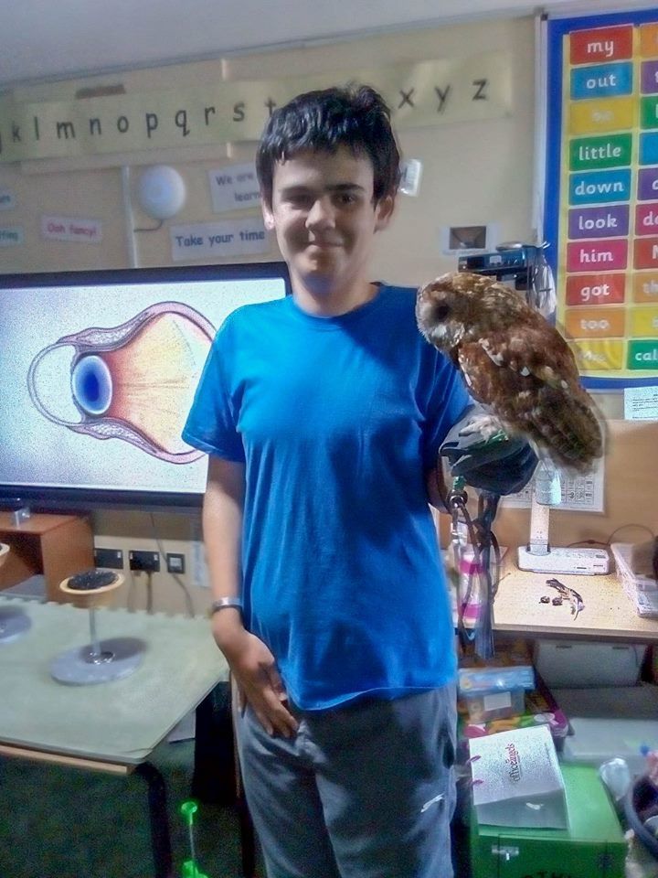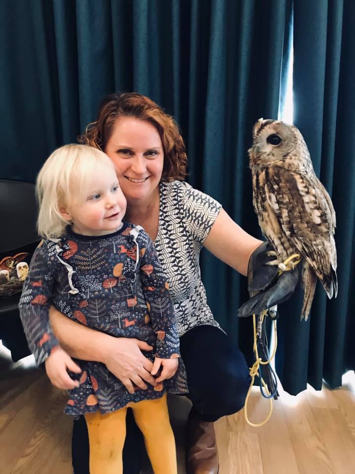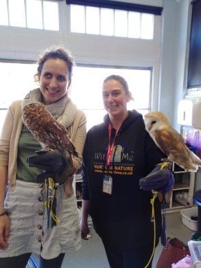 Melissa & Teacher with Jonny & Arthur Owls, after an educational & therapeutic morning with Students & Teachers.